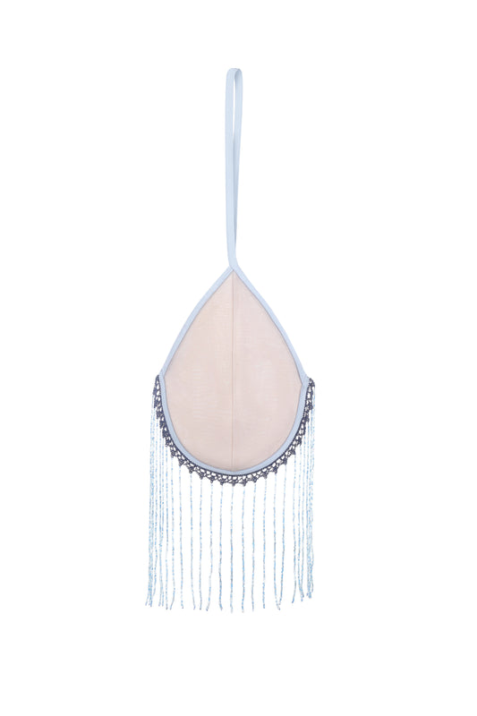 "Bra" bag with beaded fringe with a long strap