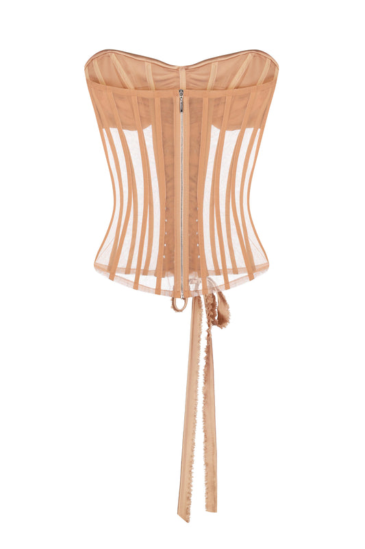 Lace-covered tulle corset
