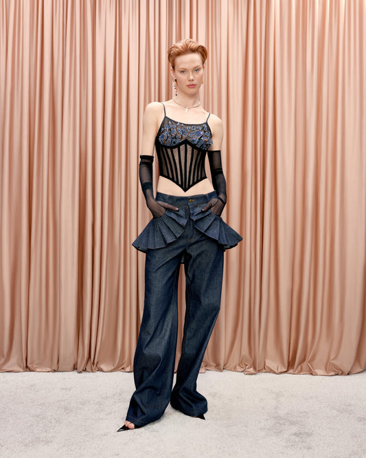 Corset with denim cups