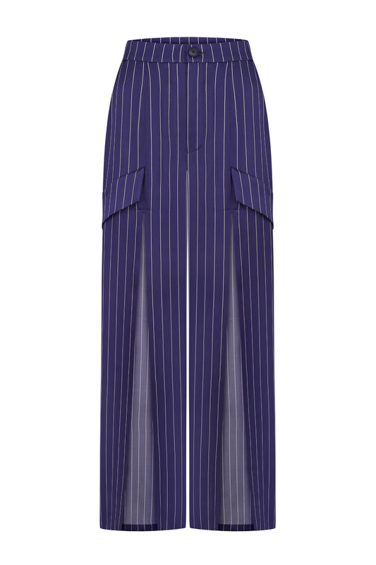Stitched trousers with transparent pockets