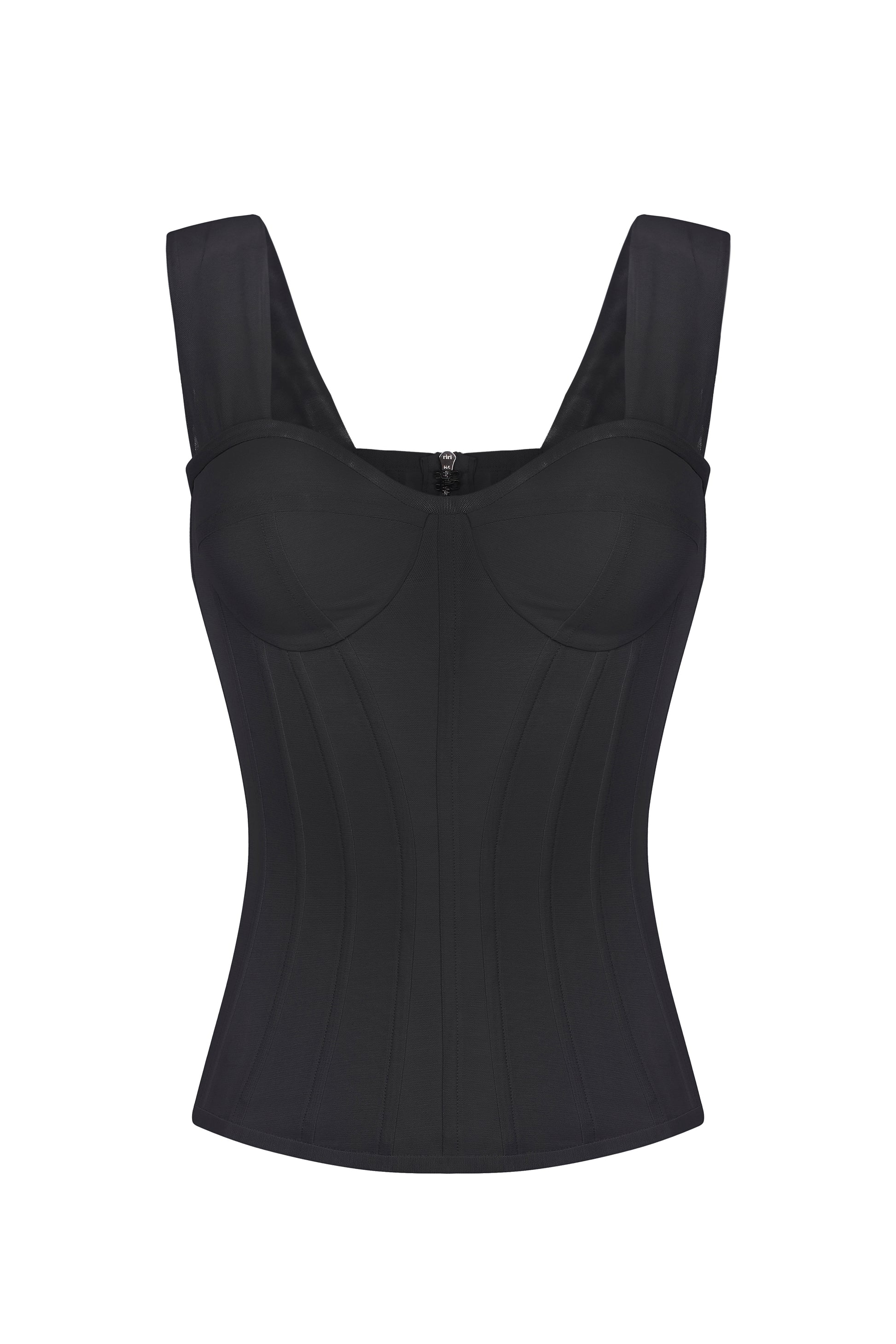 Corset with deep cut and straps