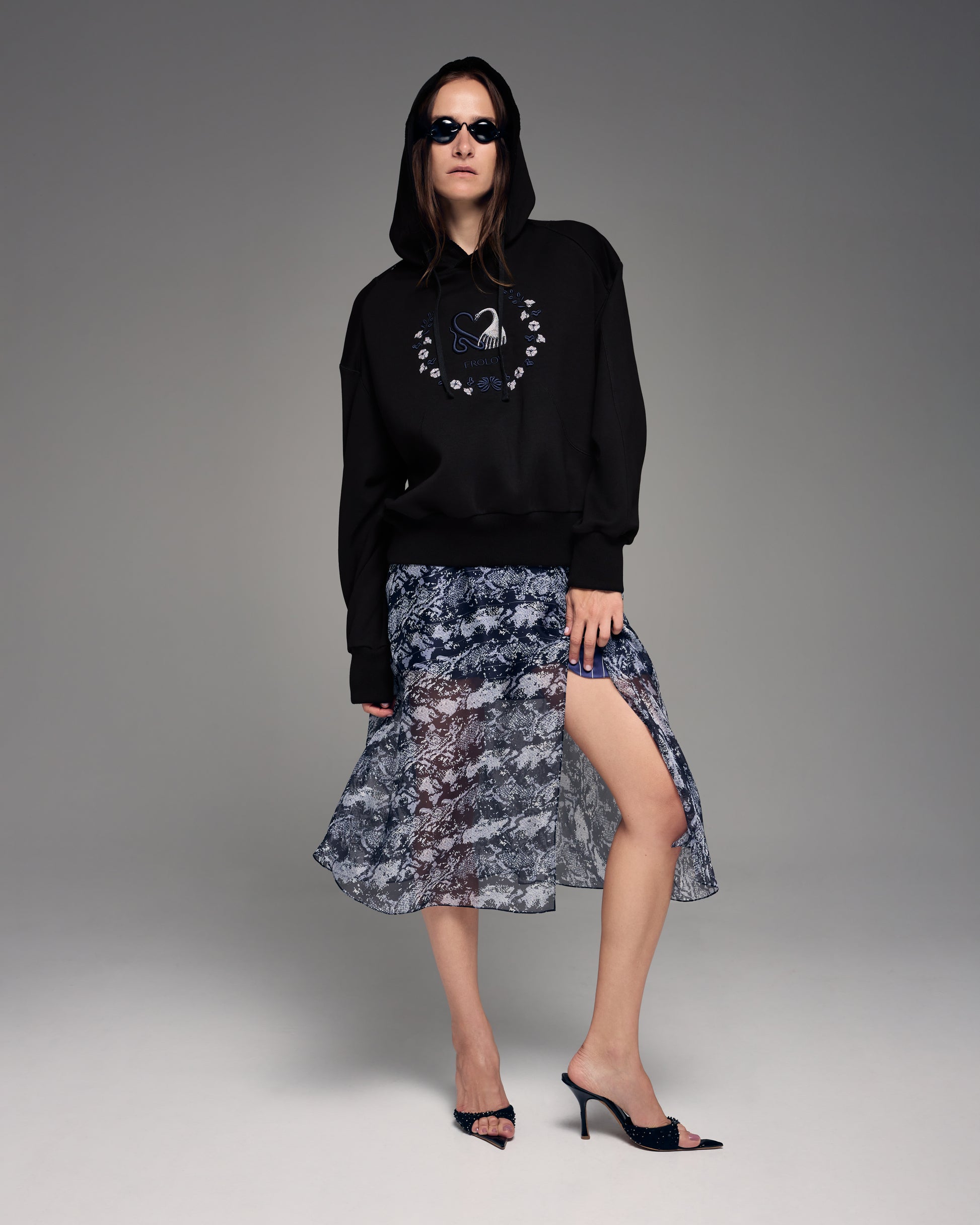 Translucent skirt with a cut